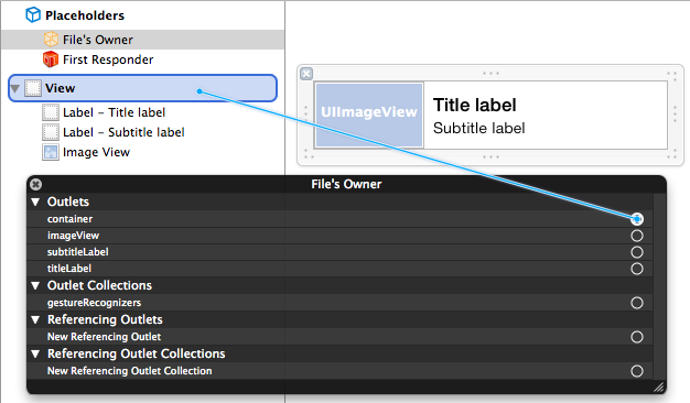 the base UIView is connected to the container property of the file owner: